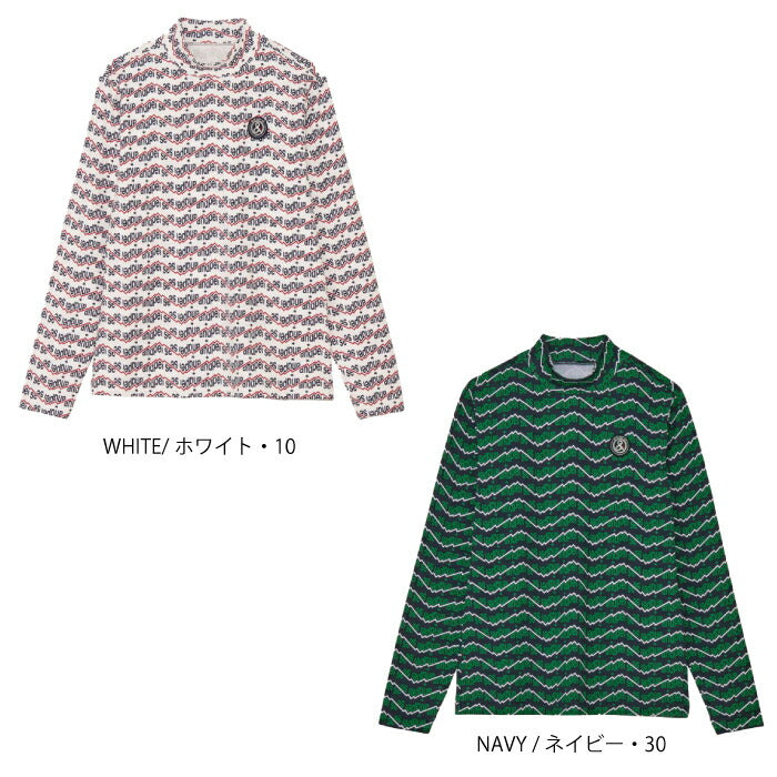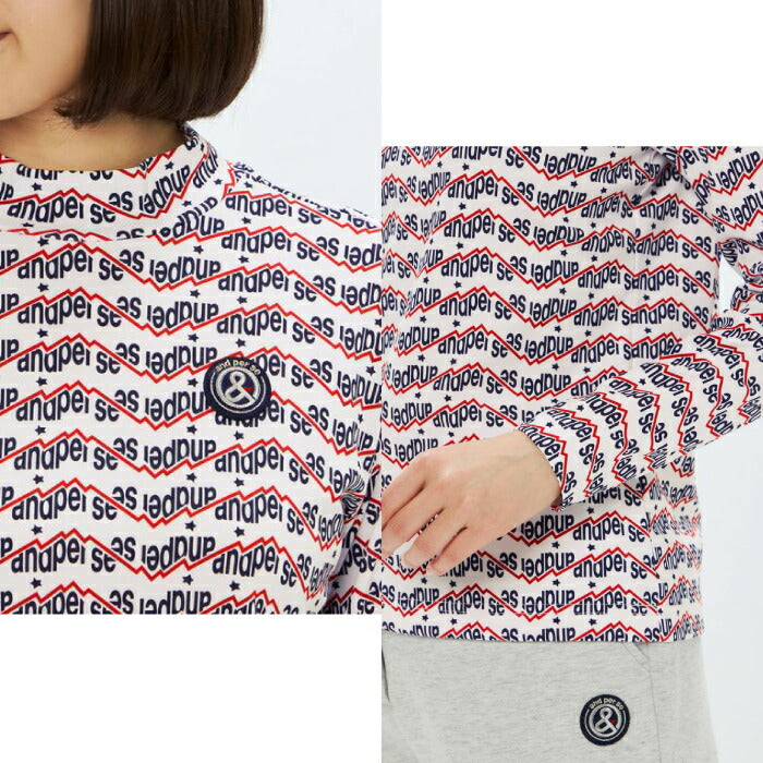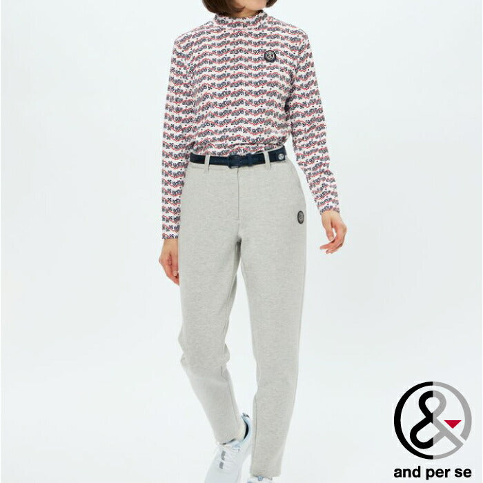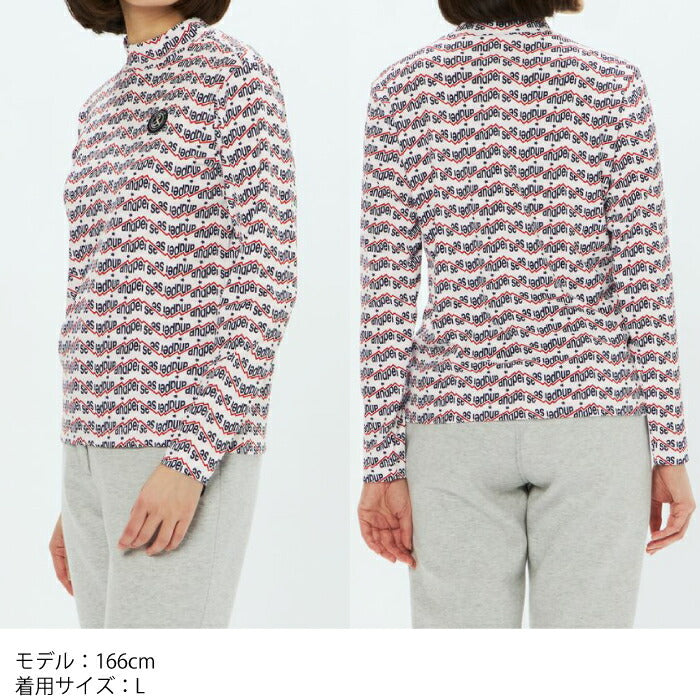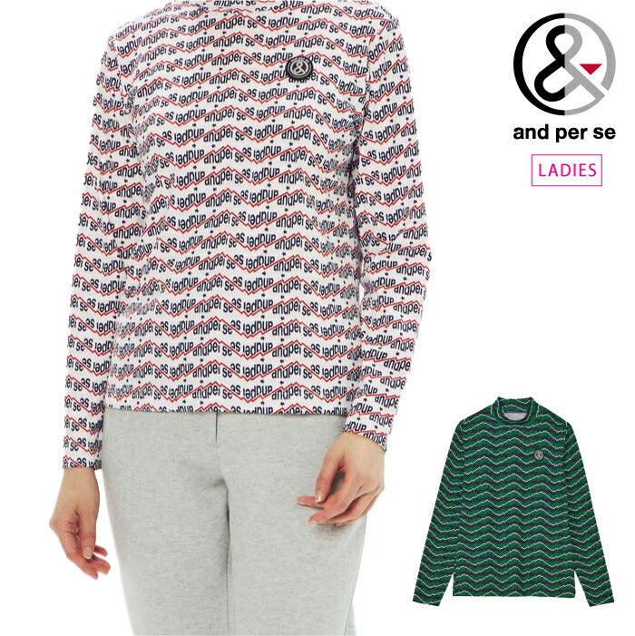 and per se アンパスィ ゴルフウェア レディース ショットスムーザープリント長袖モックネックシャツ マルチストレッチ 吸汗速乾 UVプロテクト AFF9205X2