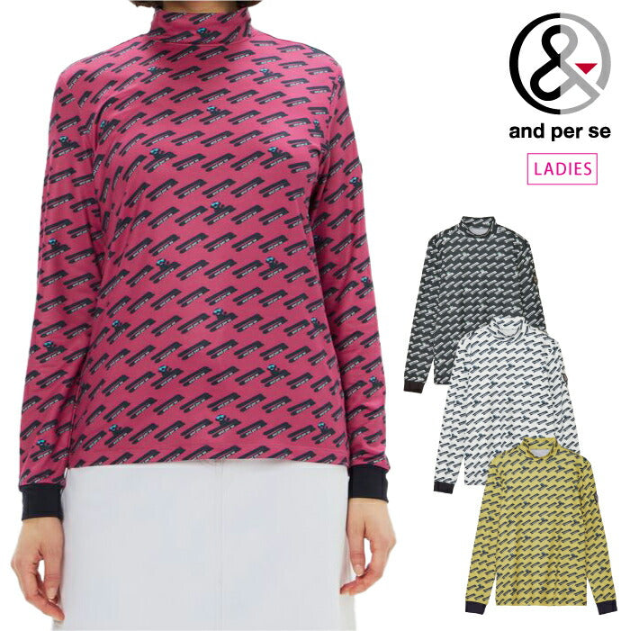 and per se アンパスィ ゴルフウェア レディース ソフトニット長袖モックネックシャツ マルチストレッチ UVプロテクト AFF9255X8