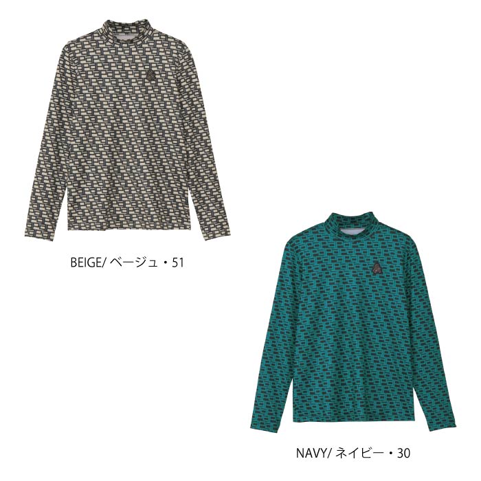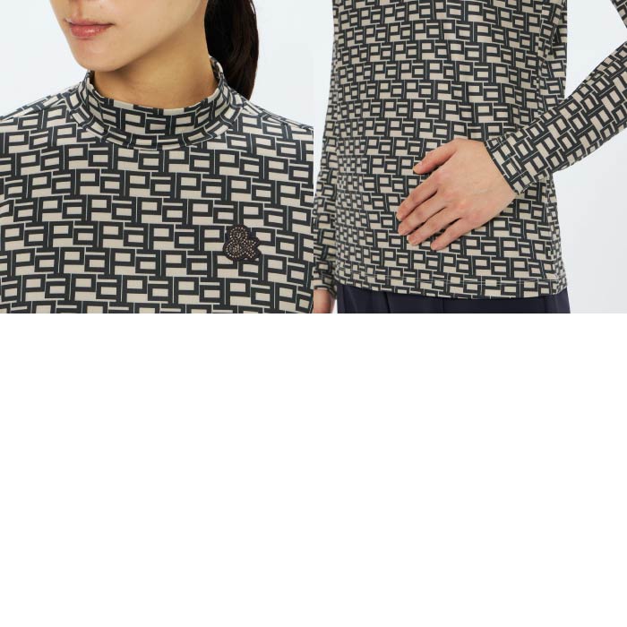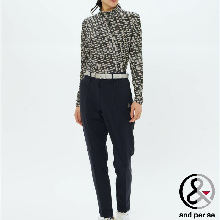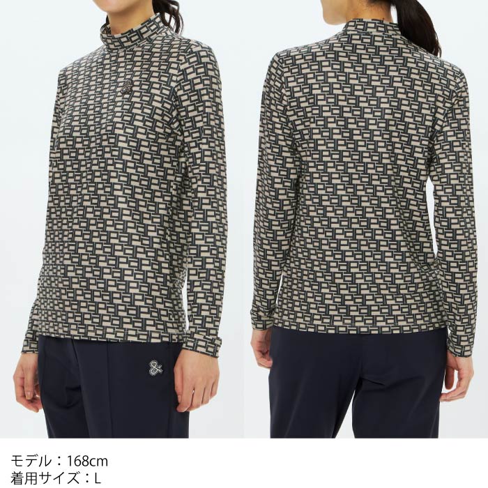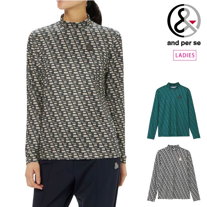 and per se アンパスィ ゴルフウェア レディース フラッフィープリンテッドモックネック長袖シャツ マルチストレッチ UV AFF9285X9