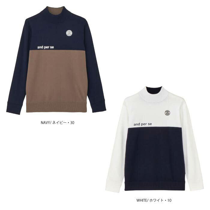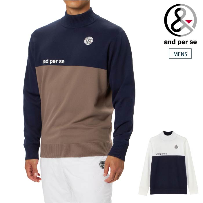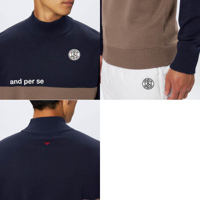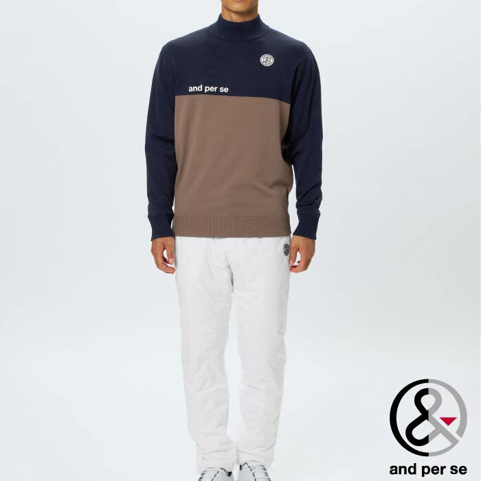 and per se アンパスィ ゴルフウェア メンズ ウインドシャッター袖防風ハイネックセーター ストレッチ 軽量 部分防風 吸湿発熱 AMF2315A3