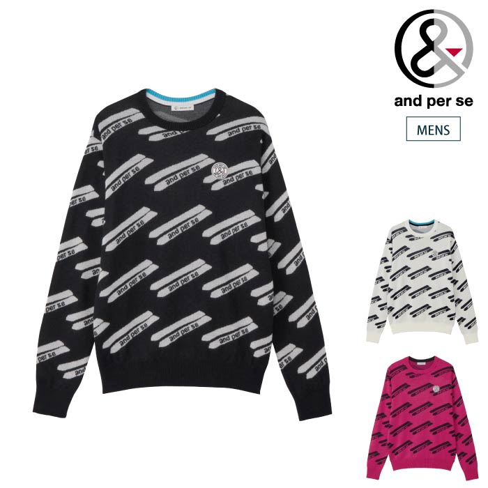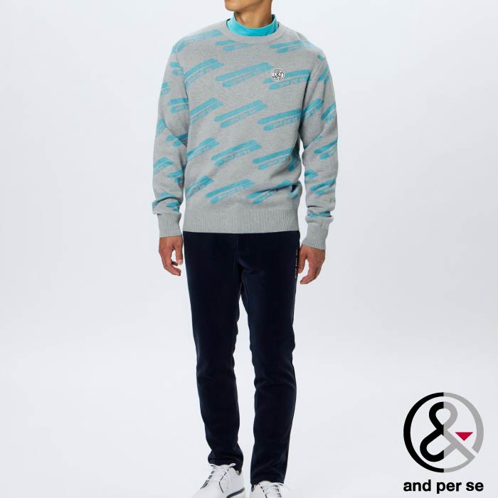 and per se アンパスィ ゴルフウェア メンズ クレアニットジャカードセーター 日本製 吸湿発熱 洗濯機OK 抗菌防臭 AMF2325B7