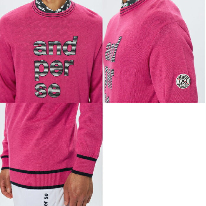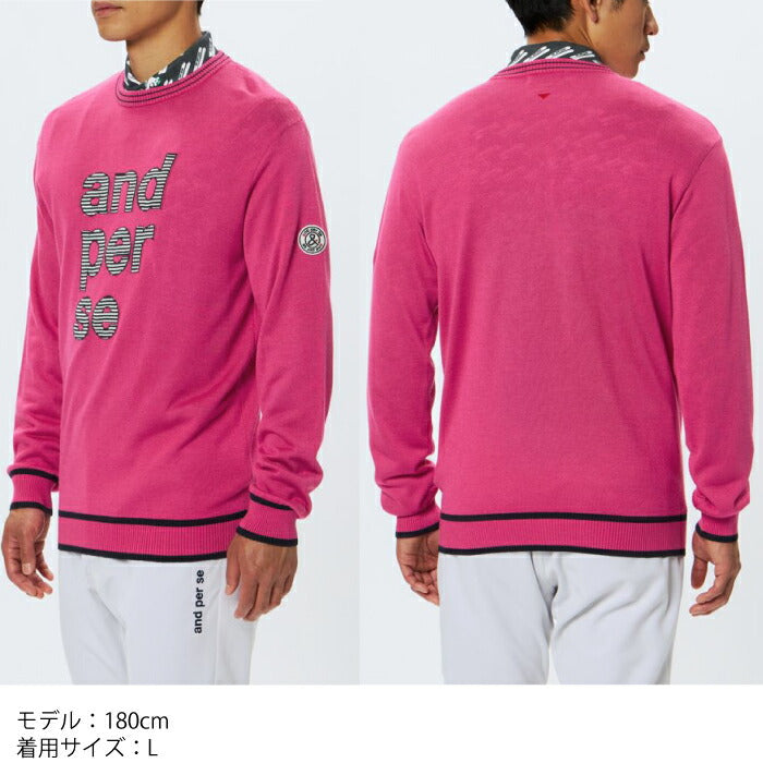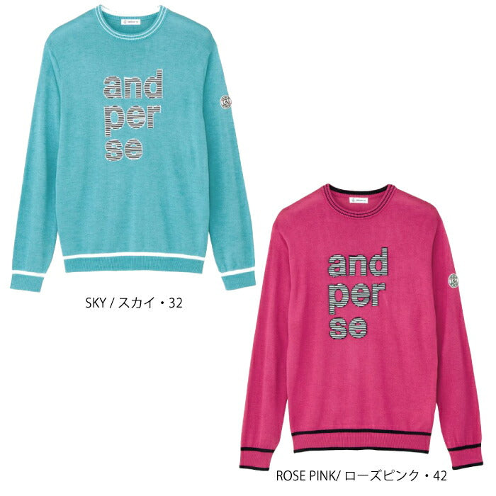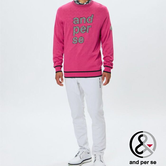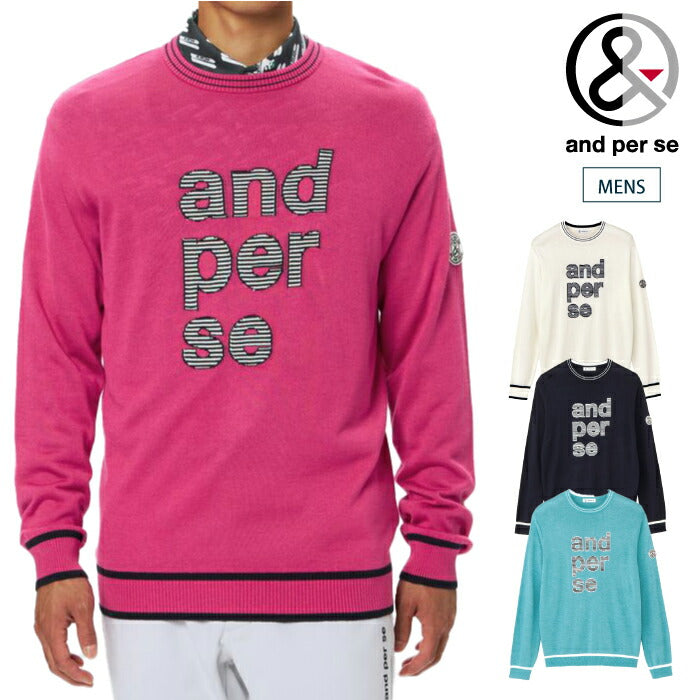 and per se アンパスィ ゴルフウェア メンズ クレアニットクルーネックセーター 日本製 吸湿発熱 抗菌防臭 AMF2345A7