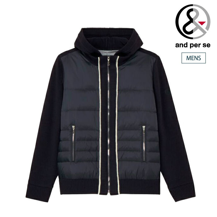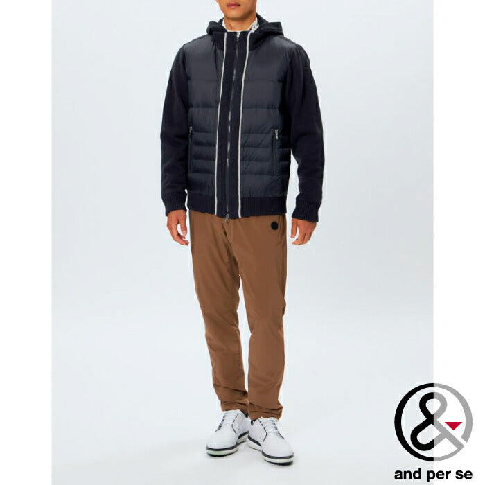 and per se アンパスィ ゴルフウェア メンズ ダウン切替ニットフーディーブルゾン 保温 吸放湿性 AMF2985A5