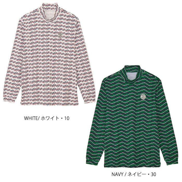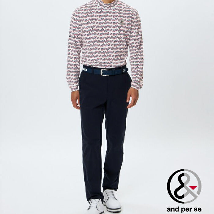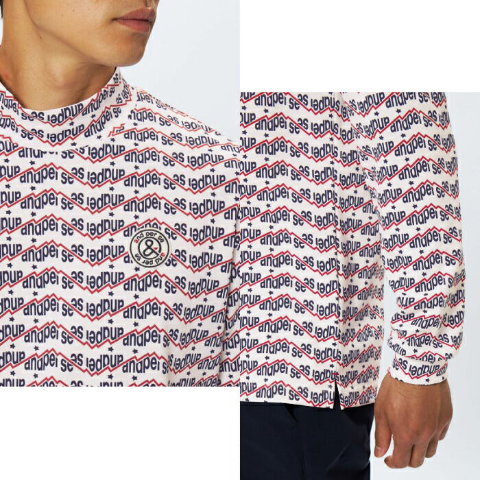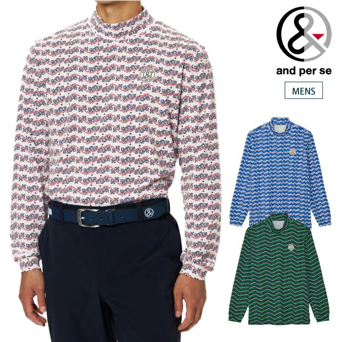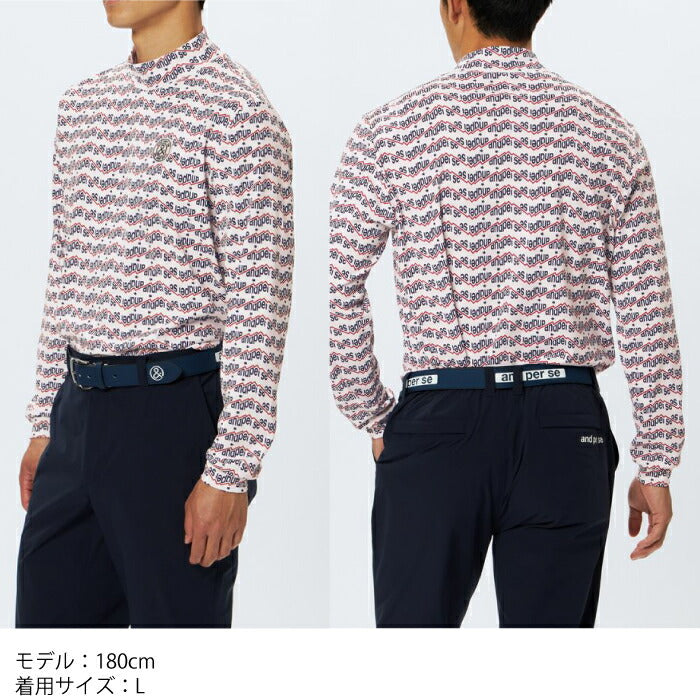 and per se アンパスィ ゴルフウェア メンズ ショットスムーザープリント長袖モックネックシャツ マルチストレッチ 吸汗速乾 UV AMF9205X2
