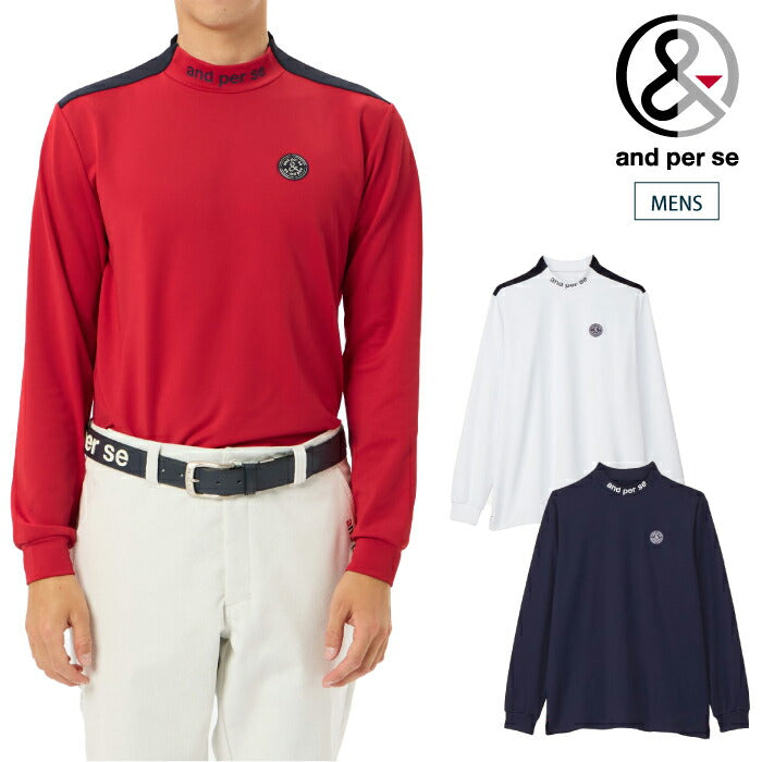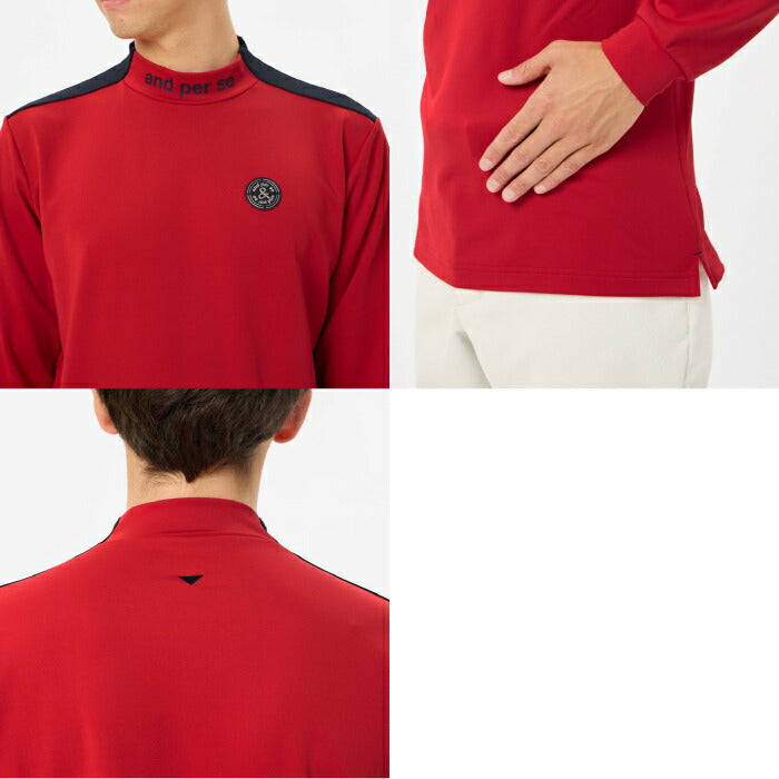 and per se アンパスィ メンズ ゴルフウェア メルトウォーム長袖モックネックシャツ ストレッチ、UVプロテクト AMF9254W3