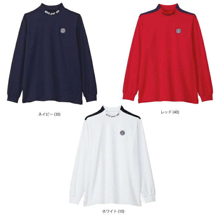 【30%OFF SALE】and per se アンパスィ メンズ ゴルフウェア メルトウォーム長袖モックネックシャツ ストレッチ UVプロテクト AMF9254W3