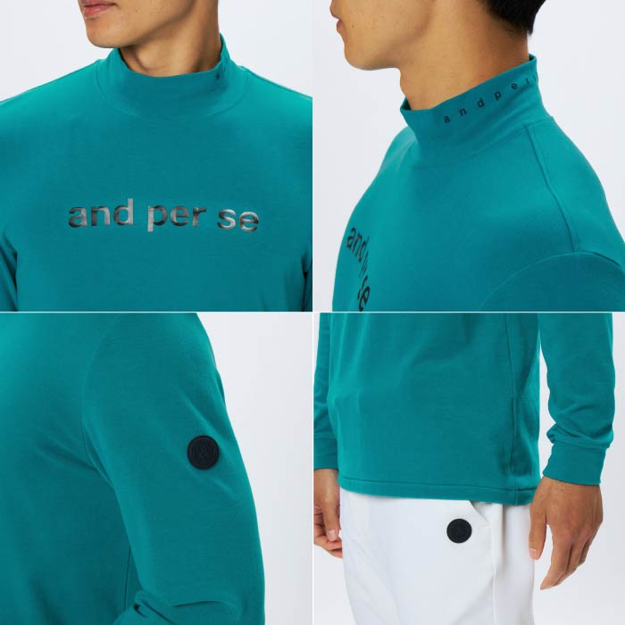 and per se アンパスィ ゴルフウェア メンズ ウォーム4WAYストレッチ ハイネックシャツ 日本製 マルチストレッチ 保温 UV AMF9275W7