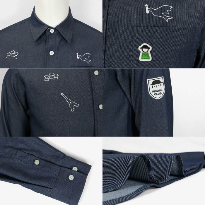 PICONE CLUB ピッコーネクラブ ゴルフウェア メンズ 長袖 線画デニムシャツ C425908