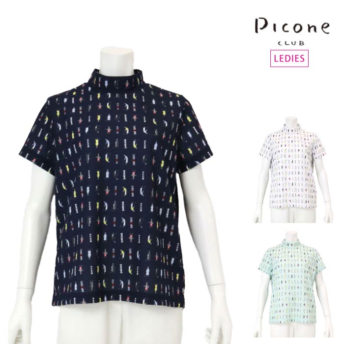 PICONE CLUB ピッコーネクラブ ゴルフウェア レディース 半袖シャツ ゴルフピコ柄UV速乾プルオーバー ゆるめネック c459425
