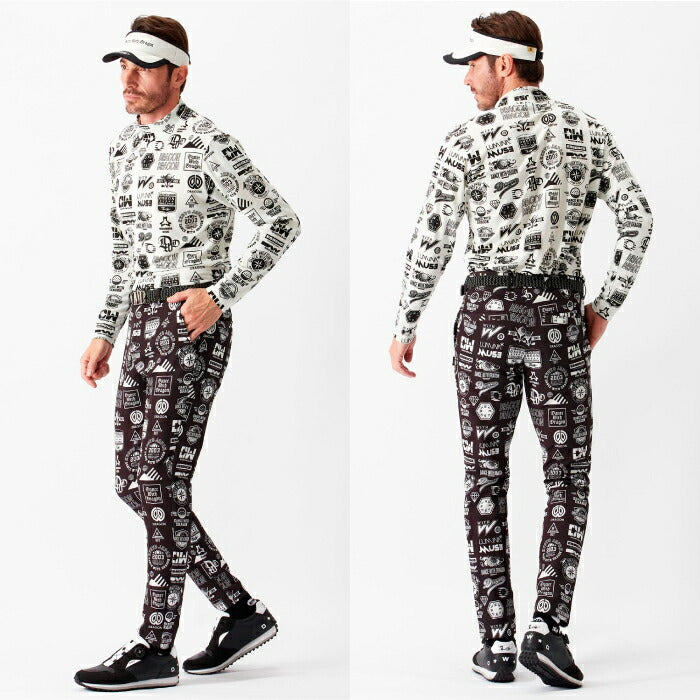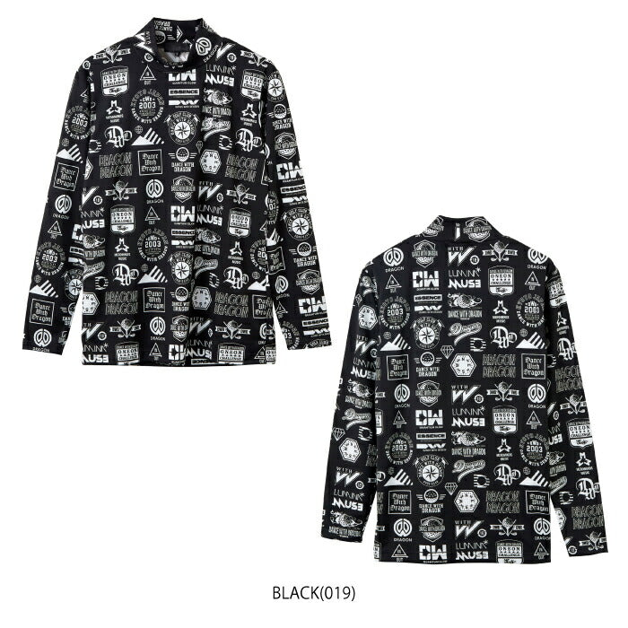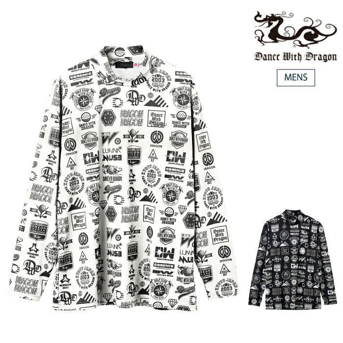 Dance With Dragon ダンスウィズドラゴン ゴルフウェア メンズ Various marksプリント長袖モック 高機能モック ストレッチ D1-180110