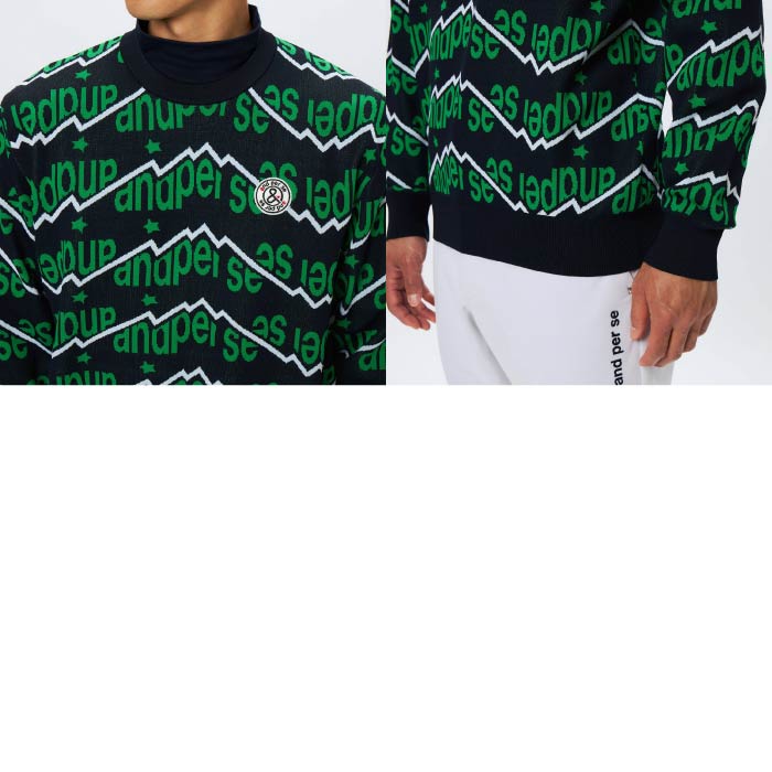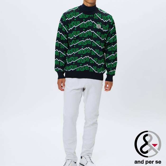 and per se アンパスィ ゴルフウェア メンズ アクティブニットジャカード セーター マルチストレッチ 軽量 洗濯機OK AMF2305A2
